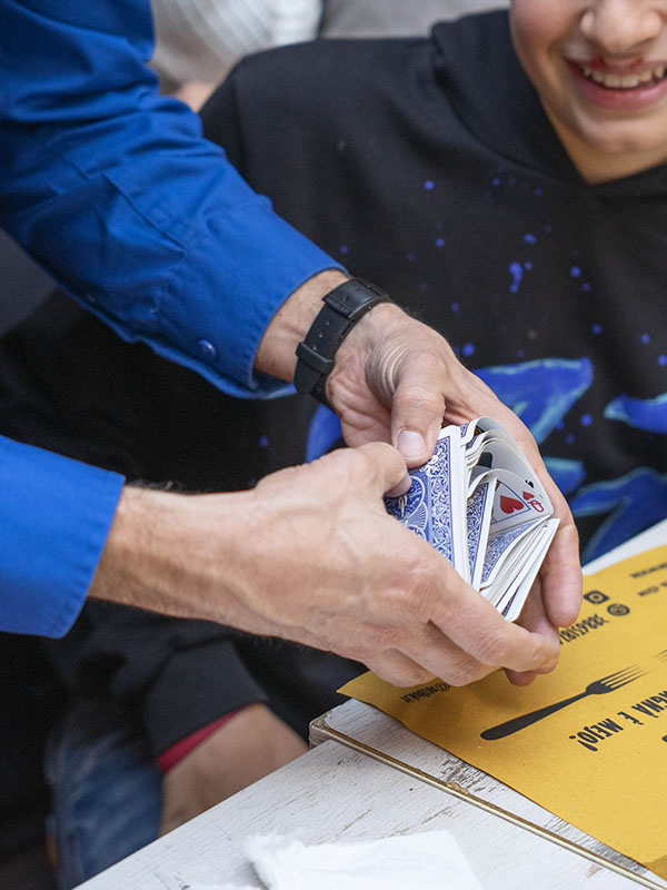Puoi organizzare serate musicali oppure divertentissimi momenti di magia direttamente al vostro tavolo, oppure momenti teatrali, prova ad immaginarti una cena con delitto, oppure una situazione con il modernissimo sistema silent, tutta la tavolata immersa nella musica scelta.